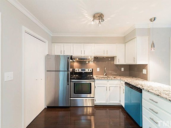 This Carrboro two-story offers a fireplace, stainless steel appliances, granite kitchen countertops, and a patio.