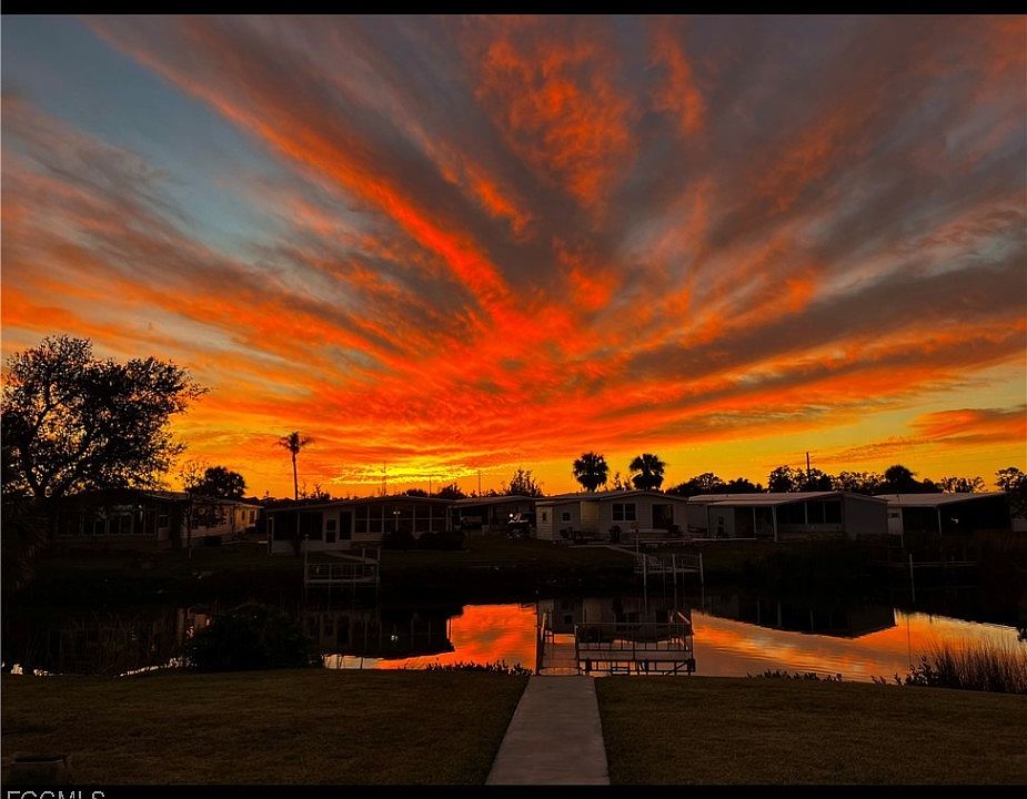 Come explore the charm of this beautifully UPDATED and TURN-KEY furnished WATERFRONT home located in the ever so popular Lazy River Village 55+ gated golf cart friendly community in North Port. You have direct boating access from the home’s own dock out to the Myakka River, Charlotte Harbor and the Gulf. You will enjoy the spectacular water views from both sides of the home, with the most amazing SW Florida sunsets from your new screened lanai in the back yard, as well as peaceful sunrises out the front over Lake Antigua across the street from your driveway that has park benches to sit and relax while listening to the sound of the large fountain. The home features a light and bright open floor plan with great water views out the windows, custom top-down/bottom-up cellular shades throughout, a freshly painted interior (walls and ceiling are actual drywall), a new HVAC system (2023) with a Smart Home thermostat, new insulation, new carport, extended driveway, new roof (2023), new ¾” plywood floor decking throughout the home for ensured stability and topped with new luxury vinyl flooring, new kitchen cabinets with soft close doors and drawers with some pullouts, high end custom quartz counters, new range, microwave and dishwasher, new bathroom cabinets with soft close doors and drawers, new concrete sidewalk from the back door to the dock. Golf cart is negotiable! Amenities at Lazy River Village include a swimming pool and hot tub, a large up-to-date clubhouse with so many activities for everyone such as dancing, quilting, sewing, yoga, art, music, pool aerobics, cornhole, among many others, an exercise room loaded with workout equipment to help keep you fit, a reading library, two craft rooms, card game room, billiards room, tennis, bocce and pickle-ball courts, pitching/putting green with outdoor driving net, shuffleboard court, horseshoe pitch, marina (38 docks, boat ramp and 2 canoe/kayak racks) and a busy, well-stocked woodshop with a wide variety of machinery for tackling most projects you may have. Low monthly fee of $276 includes access to all these amenities AND lawn maintenance and cable/Wi-Fi. There is an additional low fee for use of the woodshop, marina docks/kayak racks, and secured onsite storage yard for trailers, boats and RVs. This is a super active and friendly neighborhood with a lot of opportunities to be social and get involved. The community is within a short drive to shopping, dining, beaches, golfing, MLB Spring Training Parks for the Braves and Rays, I-75 exits, and Sarasota and Punta Gorda Airports. Still reading this? You need to come see it for yourself and get ready to make it your new address!
