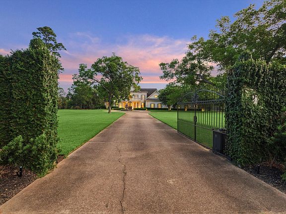 Tucked away on nearly 4 wooded acres in the heart of Friendswood, this exceptional estate offers an unrivaled combination of elegance, privacy, & convenience. Behind the gated entrance, you'll find a meticulously designed home with exceptional craftsmanship. The spacious 2-story living room flows into a cozy morning room with tranquil views of the backyard, pool, & water feature. The expansive primary suite also captures these calming vistas. The gourmet kitchen impresses with high-end appliances, marble countertops, and custom cabinetry—perfect for both everyday living & entertaining. An oversized media room, complete with surround sound & a wet bar, provides the ultimate entertainment space. Bespoke finishes including intricate millwork, rich hardwood flooring, & a dramatic stone fireplace that anchors the main living space. Zoned to the highly sought-after Friendswood School District, this estate combines comfort, luxury, and convenience—truly a one-of-a-kind living experience.