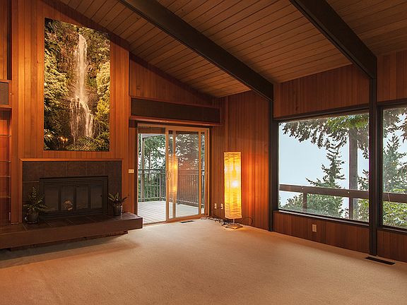 5 bedroom 2 full bath home with magnificent views on a large wooded lot on South Hill. Blocks from Western Washington University. Original cedar planking in living room, enjoy the awesome sunsets and views from two decks. Improvements include new hi-efficiency furnace w/electric air cleaner, garbage disposal, and dishwasher. Deck rails updated to code. Private dead-end drive with a path to the main road. The deer like to wander this beautiful property as well. Convenient built-ins, magnificent views, two fireplaces, soaring ceilings...you name it, this home has it!