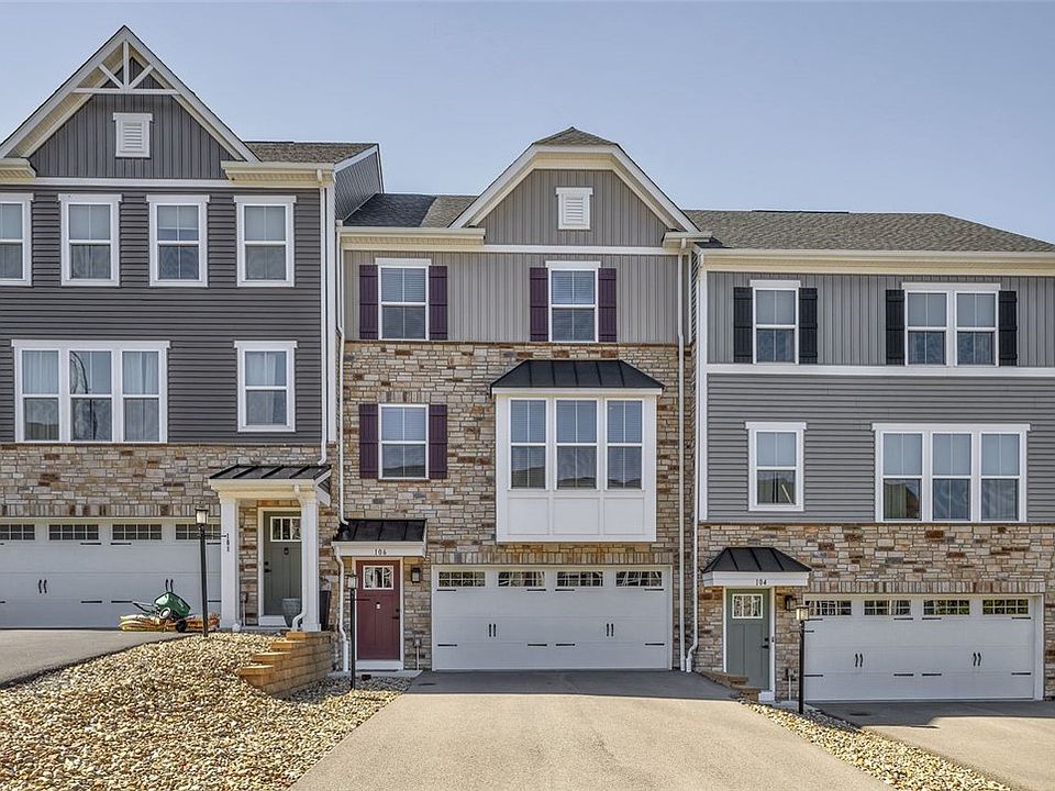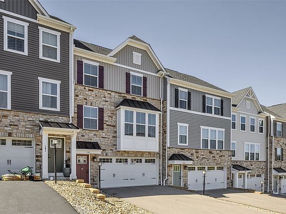 Move right into this 4 yr young, better than new Wexford Model townhome boasting patial stone face and bay window for added curb appeal and has Craftmans style finishes.. Located in the heart of Cranberry Twp this sought after location is minutes from I-79 N & S & right next to the Y. that has great gym & pool. Entry & 1st floor boast wood like LVP. Center island kitchen w/breakfast bar w/pendant lighting offers gleeming white granite topped cabinets,stainless appliances & door that leads to new steps to flat backyard & wooded area for privacy. Kitchen is also open to dining area & great rm w/bay window. Powder & desk area complete 1st flr. Up find large primary bedrm,primary bth w/glass&ceram shower,granite topped dbl basin vanity,ceram flr &walk in. 2 more bedrms both w/ fans and nice size closets.Hall bath also boasts ceramic flr. 2nd flr laundry is convenient. Entertain in family room in entry level.Snow care & lawn care provided recessed lights galore.MUST C