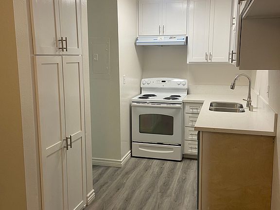 Completely remolded. New paint, laminate flooring, blinds, ceiling fan, toilets, and faucets. New kitchen with new wooden white cabinets and Quartz counter tops. Breakfast nook with ceiling fan. New bathrooms with new wooden cabinets and quartz countertops and tile shower/tub. 2 bedrooms with large mirrored closets. Unit has plenty of cabinets throughout for storage. One car private garage with storage. Across the street from middle school, a few blocks from elementary school and Redondo Union High School. 4 unit building with laundry room. Close to beach, restaurants and shopping. Duration of lease is one year, then it goes to month to month. This is a no smoking building. Owner pays for water, trash and gardener. Tenant pays for electric. If coming with a pet, a pet deposit is required.