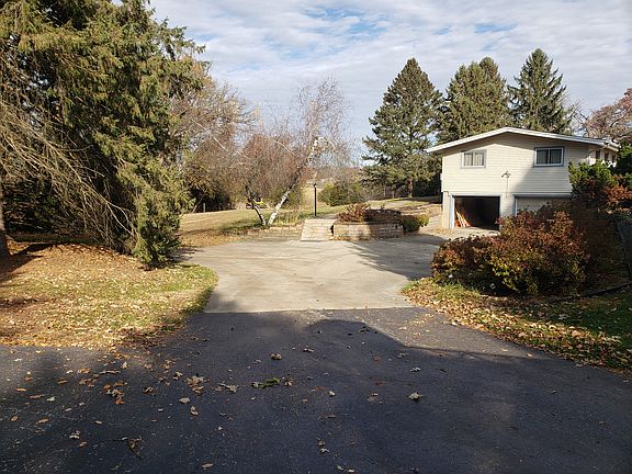 This house is located outside of town on N. Van Brocklyn, near W. Lily Creek. Two large bedrooms, 1 1/2 bathrooms, living room, eat in kitchen, basement (1/2 finished, 1/2 unfinished). 2 car garage - one door has an electric opener; the other side is manual. Large yard, approximately 2 acres. Note that the "fireplace" that can be seen in the stairs to the basement picture is not a functional fireplace. It can easily be removed. Agent owned.
