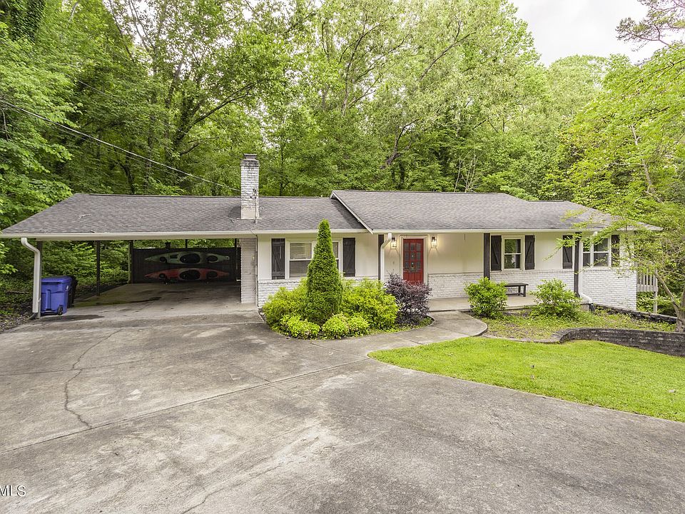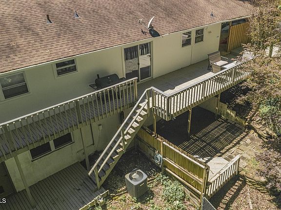 Charming 3br/2.5 bath located in Oak Hills Estates in Oak Ridge, Roane county. Updated with an open floorplan, wood laminate flooring on the main level, a modern kitchen with large butcher block, quartz counter tops, Samsung stainless steel appliances including a french door refrigerator, and a farm house SS kitchen sink. Other features include fireplace with new ventless gas logs and remote, new lighting and living room ceiling fan, newer vinyl windows throughout, large finished basement flex space, spacious owner's suite, and a deep jetted tub in the guest bathroom. Third bedroom has premium rubber flooring, perfect for a home gym or easily-maintained studio. Tons of storage and even space for a workshop! Multi-tiered deck overlooks private wooded fenced backyard. See Supplemental page Electrical panel, outside meter, and masthead replaced in 2021. Water line from street to home replaced with PEX 08/2021 with some internal copper pipes replaced as well.