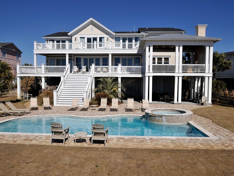 With a grand facade, abundant outdoor living spaces, spacious bedroom suites and an unparalleled ocean front location, this home is an investor's dream. The rental numbers for this property are staggering! Even with the owners using the home Gross Rental Numbers for the past two years are as follows: 2012 - 347K 2013 - 330K and over 250K booked so far for 2014 Upon entering the stately and expansive home, you will be taken away by the dramatic foyer and breathtaking views of the ocean. An extremely large and open living space incorporates a great room and dining room with floor to ceiling windows looking out over the ocean. The sparkling waters of the Atlantic stretch as far as the eye can see and you can also see Breach Inlet and Sullivans Island. A grand piazza offers panoramic views of the ocean and has a covered area which houses an outdoor fireplace as well as a defined grilling area. Journeying down the stairs to the backyard, you will find an elegant stone deck surrounding the in-ground pool and hot tub. A private boardwalk extends to the beach and there is additional covered space beneath the home which could function as additional living space. Back inside, the gourmet kitchen is a chef's dream with granite counters, pro-style stainless steel appliances, a center island, dual ovens and fridges--plus an amazing ocean view! The ocean-front master suite is also located on this level and boasts access to the back piazza along with a spacious and well-appointed bathroom. An additional bedroom and sitting room are also located on the main floor. Seven additional bedrooms are located upstairs and each has its own en suite bathroom which is an attractive feature for guests. Most of the rooms face the ocean and the majority have access to either the ocean-facing second story piazza or the front piazza. Additional features include an elevator, a stone driveway with ample parking, a beach volleyball court and much, much more Truly a MUST-SEE on Isle of Palms!