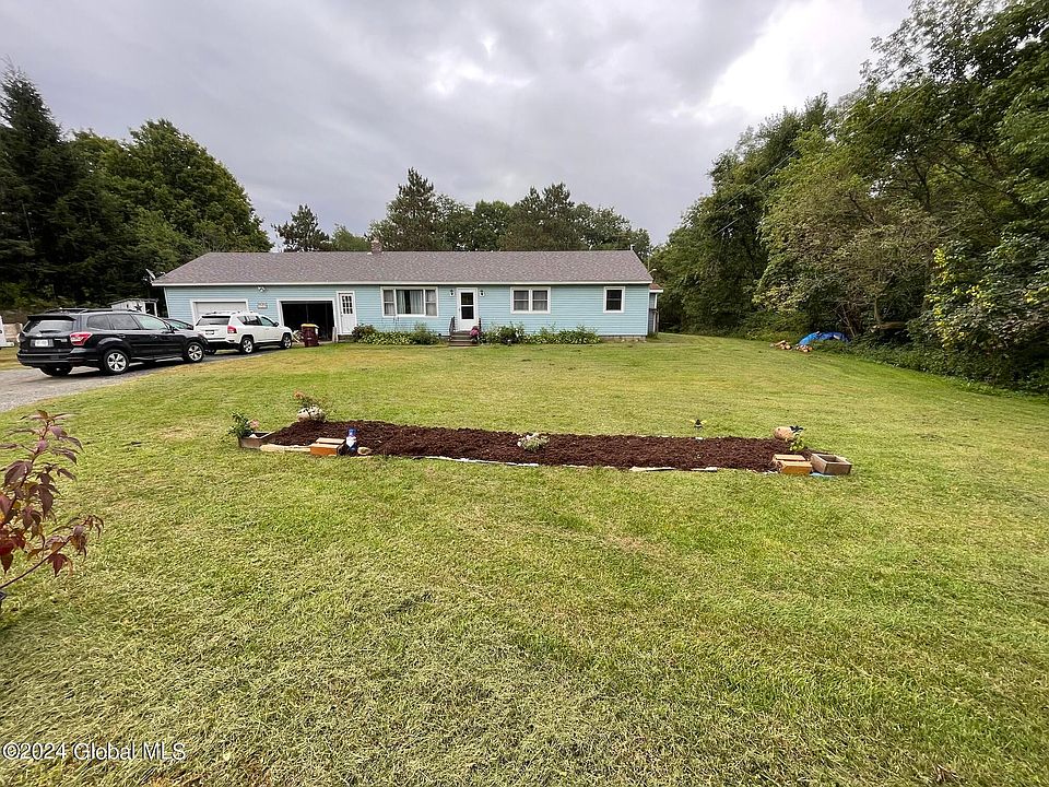 This ranch home features 3 bedrooms, 1 bathroom and sits on 4.5 acres in the sought after Cambridge School District! Enter into the large living area with semi open concept to the kitchen with tons of natural light. The hallway will lead you to three very spacious bedrooms and a large bathroom. The two car attached garage will keep you and your car warm from the elements! PLUS a full basement that has a wood stove that could be easily finished. Enjoy this upcoming summer on the back deck overlooking your huge yard, come take a look!