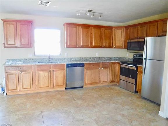Wow, what a chance to own your own piece of history in Lehigh Acres! This home has been professionally remodeled with all new granite countertops, Metal Roof, A/C, Screen Room and more! Once entering, you will see the beautiful open concept/great room which allows for tons of space for the family to gather. The master bedroom with its own entrance is separated from the other bedrooms and provides tons of privacy. Upon exiting through the massive back sliders, you have your choice of relaxing in your screened in lanai, or under neath your covered awning while you grill out with friends and enjoy the beautiful lake view.