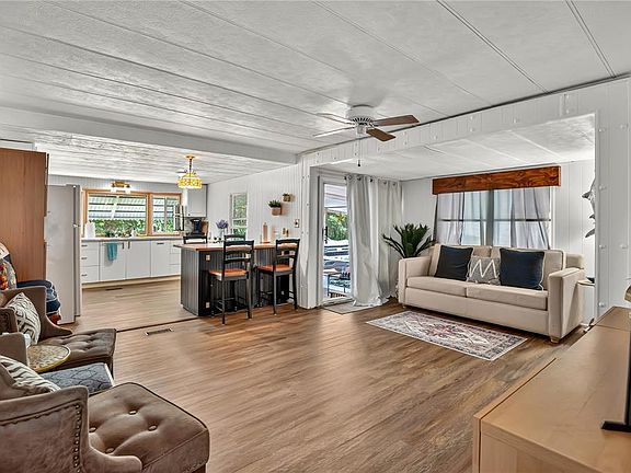 Welcome to Leisure World Park! This charming 2-bedroom, 1-bathroom mobile home offers comfort, convenience, and a touch of Florida lifestyle living. As you arrive, you’ll notice the carport and spacious screened wrap-around patio, perfect for enjoying morning coffee or evening breezes. Step inside to find wood flooring throughout, a cozy kitchen with an eat-in space, solid wood cabinets, stainless steel appliances, and a white refrigerator framed by windows with a pleasant view. The home features two comfortable bedrooms and a full bath. The screened patio leads to an extra storage area with washer/dryer hookups and built-in shelving—a great space for organization. Leisure World Park is a gated, waterfront community offering exclusive amenities including a private boat ramp, marina, and community pool. With direct access to the St. John’s River and Lake Monroe, this is a boater’s and nature lover’s dream. Conveniently located just minutes from shopping, dining, and entertainment, this home provides the perfect blend of relaxation and accessibility. Don’t miss your chance to own a piece of this vibrant waterfront community—schedule your showing today!