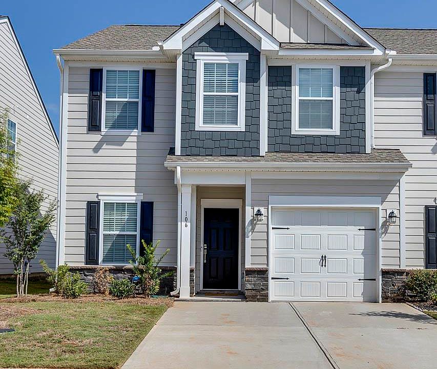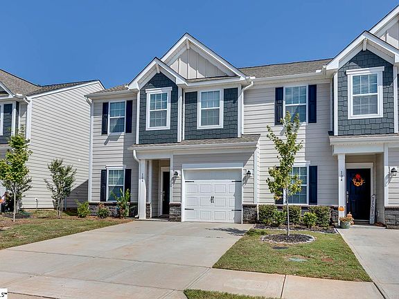 From the moment you arrive, this townhome sets the tone for easy living with lawn care included and a thoughtful design that balances comfort with style. With four bedrooms, three full bathrooms, and a one-car attached garage, it’s a home that adapts as easily to quiet evenings as it does to weekend entertaining. As you step inside, you will find an open concept main level where natural light spills across the Kitchen, Breakfast Room, and Living Room. The Kitchen is a true showstopper, with its clean white cabinetry, polished quartz countertops, stainless steel appliances, and a breakfast bar perfectly sized for morning coffee or evening conversations. The dining area sits just off the Kitchen, while the Living Room draws you toward the outdoors. Glass doors open to the patio with views of the Blue Ridge Mountains and nearby Lake Robinson which provide a stunning backdrop for you to relax and enjoy the fresh air. The Primary Suite is tucked away to the back of the main floor, offering a restful retreat. The Primary bathroom features a dreamy walk-in shower, dual sink vanity, and a walk-in closet. Also on this level, a fourth bedroom with a nearby full bath on the hall makes a versatile spot for guests or as a dedicated office. Upstairs, you will find a generous loft, two additional spacious bedrooms, and another full bathroom. This home is crisp, clean, and move-in ready, with an unbeatable location that is less than a mile from Vernon J. Robinson Park and only minutes from downtown Greer, Greenville, and Travelers Rest. Don't miss out on your chance to make this charming abode your new home. Schedule your showing today!