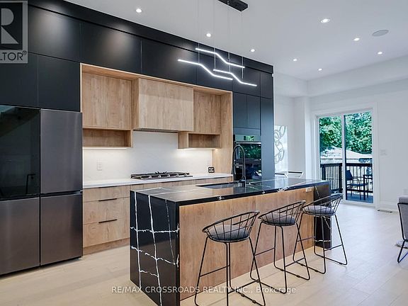 Luxurious Home In Toronto High Demand Area. This Gorgeous Home Has Been Built With Immaculate Detail In Design, Function & Quality! Open Concept Living & Dining With Gorgeous Engineered Hardwood Flooring throughout, Large Windows & Led Lighting! Chef's Kitchen With Quartz Counters & Backsplash, Waterfall Centre Island & S/S Appliances Including Gas Range & Built-In Microwave Oven! Stunning, Sun Filled Family Room With B/I Fireplace With Custom media Wall, overlooking large deck & fully fenced Backyard! 2nd Floor Features Primary Bedroom Features Large Closet & Spa Like Ensuite With Glass Shower & Large Quartz Vanity! 2nd bedroom offers its own 3 piece en-suite. 3rd & 4th Bedroom Feature Large Windows & Closets with 3pc common washroom. Walk-out Basement with high Ceilings, recreational room, One bedroom plus one washroom & an office space. Wet bar with B/I cabinets, sink & Quartz Counter & a refrigerator. Fully tiled furnace room. Single car garage with a long driveway for parking. Close to park and schools. Interlocked Driveway* Fenced & Gated Backyard, l* Easy Access To Downtown, Bike To The Bluffs* 8 Mins Walk To THE GO* Close To Top Ranking Schools, Shops & Parks.