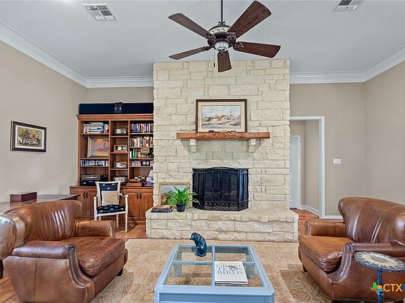 EXCEPTIONAL NEW PRICE! LAKEFRONT HOME! Beautifully appointed custom lakefront home nestled onto an oversized .66 acre lot in the highly desired Lake Forest neighborhood. You’ll enjoy the privacy & the tranquil views this haven has to offer. Once you step inside the oversized living room, fall in love with the beauty of the high ceilings, stone fireplace, many windows & French doors. Adjoining the Living room is a warm & inviting sunroom. The gourmet kitchen features an oversized island, quartz countertops, stainless appliances and a very cozy breakfast area with a lovely view of private garden patio. Through a sunlit passageway, you’ll arrive at the oasis of the primary suite. The bath features dual sinks, walk-in shower, walk-in closet and a freestanding tub where you can admire your view while soaking your way to relaxation. The study is a wonderful retreat to enjoy reading or watching TV. The split bedroom floorplan places the other two bedrooms across the house along with a bonus room which could be used as a 4th bedroom or office. Once you step through the French doors onto your oversized back patio, you’ll be truly transported by your view of gardens, trees & the pergola as you gaze at the lake. The home also features a half bath, utility room, mud room, storage building, Generac. The tax rolls show 2805 sqft of living area but the bonus room adds an approximately 125 sqft. Additional pergola covered patio is located to the side of the home. 2 car garage. This luxurious home is the perfect retreat for entertaining or relaxing and enjoying nature.