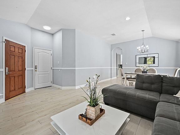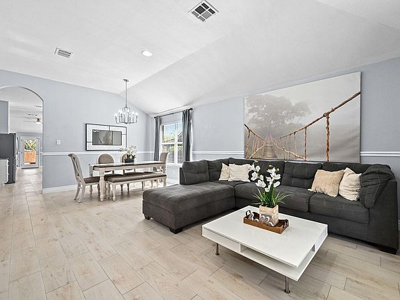 Beautifully remodeled single-story 4-bedroom home with an inground pool! Nicely landscaped with mature trees, this home features an open floor plan with two living areas, two dining spaces, and high ceilings that create a spacious and well-designed layout. Gorgeous wood-like tile flooring flows throughout the living areas, complemented by new carpet, upgraded light fixtures, and stylish ceiling fans. The stunning kitchen boasts white cabinetry, granite counters, stainless steel appliances, and a large center island, providing ample cabinet and countertop space, while the family room features a cozy fireplace with a stylish upgraded surround. The primary suite includes an updated bath with tiled walls and a generous walk-in closet. Step outside to a backyard retreat with a covered patio and trees surrounding the sparkling pool, offering added privacy and relaxing green views—perfect for staying cool on hot summer days or entertaining guests. Conveniently located just over a block from the community pool and park, with easy access to major highways and close proximity to shopping, restaurants, Costco, H-E-B, and Ralph Pfluger Elementary. Don’t miss this incredible opportunity to own a beautifully remodeled home with a pool in the growing City of Kyle!