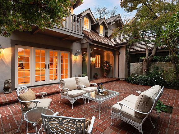 COURTYARD MANOR AT BURLINGAME PARK: ONE OF BURLINGAME'S PRETTIEST HOMES AT THE #1 ADDRESS IN TOWN! Magical English Country Retreat Comes to Life...expanded and renovated with Wow Factor elegance inside and out: Begin with heartwarming curb appeal and a signature courtyard. Huge room sizes, classic character with modern livability. Two-story entry. Indoor/Outdoor flow with courtyard, brick terraces, lavish private gardens, and garden pavilion. Upstairs architectural drama sweeps you away with towering ceilings up to 17 ft. and an unrivaled luxury master suite with fireplace, private balcony, and sumptuous full-size en suite bath. | Four woodburning fireplaces | Cozy Family Room off kitchen has potential as 4th bed including adjacent full bath | Don't miss the formal rose garden terrace | Incredible privacy and the feeling of your own tucked-away European retreat | Walk to downtown Burlingame Avenue in minutes, shouldered by high value estates reaching $17,000,000....Timeless!