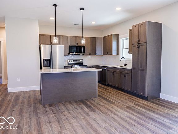 Welcome to The Lily, a smartly designed 4-bedroom, 2-bath new construction in the growing Four Oaks subdivision of Spencer, Indiana. With its open-concept layout and split-bedroom floor plan, this home keeps everyone connected while giving you plenty of personal space when you need it. The kitchen is ready for everyday life - and weekend entertaining - with a large island, solid wood cabinetry, stainless steel appliances, and quartz countertops that are as durable as they are beautiful. Sliding doors lead to a covered porch, perfect for morning coffee, family dinners, or just watching the sunset. The primary suite is your own little getaway, featuring a walk-in closet, dual sink vanity, and a walk-in tiled shower. You'll also love the luxury vinyl plank flooring throughout (easy to clean and easy on the eyes), the roomy 8x11 laundry/mud room, and the 2-car attached garage. Plus, a washer and dryer are included, so you can move right in and start living. Located in Four Oaks, this community was built around the idea of small-town living with a big country feel - where neighbors wave, kids play outside, and modern homes blend perfectly with peaceful surroundings. You'll be close to everything Spencer offers and just a short drive from Bloomington's shopping, dining, and entertainment. The Lily at Four Oaks - where practical design, everyday comfort, and small-town charm all come together.