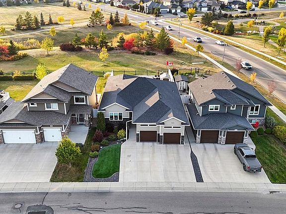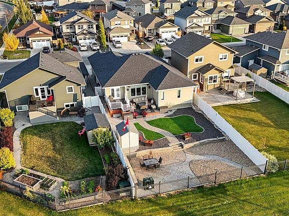 Wow! This home is truly a gem. This immaculate custom-built Fraser Homes bungalow (2014) offers 1730 ft. of fully developed living space, designed with functionality and luxury in mind. Featuring 6 bedrooms + a den, this home boasts high-end finishes, 9’ ceilings, a sound system throughout, and multi-zone heating and cooling. The chef’s kitchen includes a large island, custom maple cabinetry, stainless steel appliances, marble backsplash, and quartzite granite countertops. The primary suite features a spacious walk-in closet and ensuite with dual sinks and glass shower. All three bathrooms offer heated tile floors and Kohler fixtures. Enjoy maintenance-free landscaping with zero-scape turf, flagstone pathways, composite fencing, and a two-tier deck backing the park. Exterior upgrades include Trimlight LED event lighting (phone-controlled), polyaspartic-coated garage floors, and Hardie Board siding. With southwest exposure, three natural gas outlets, and a triple concrete drive, this home blends quality, comfort, and design in every detail.