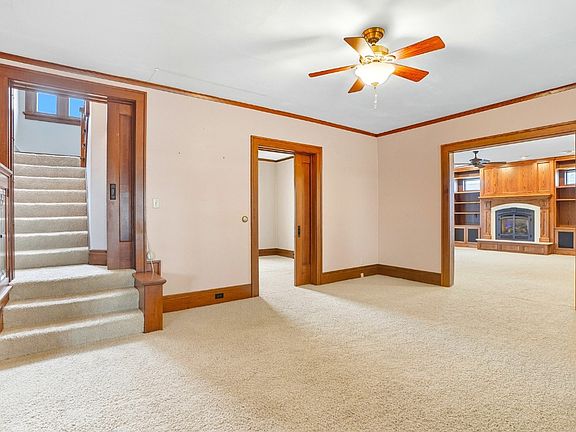 Charming, spacious, and full of character, this turn-of-the-century 4-bedroom, 2.5-bath home in Blairstown truly has it all. Sitting on a generous one-third-acre lot, it blends historic detail with modern comfort. The craftsmanship is simply stunning, with beautiful hardwood floors, impressive built-ins, and elegant pocket doors that give the home a timeless feel. The main level offers flexible living spaces, including a bedroom or den, a half bath, a sunlit and spacious dining room, a laundry and mud room, and an inviting family room addition with a gas fireplace and custom bookcases. The kitchen features ample storage, a pantry, and a breakfast bar, while the three-season room is perfect for morning coffee or relaxing in the evening. Upstairs, you’ll find three large bedrooms and two updated baths, including a primary suite with a tiled walk-in shower. A walk-up attic provides excellent storage or potential for future finished space. The lower level includes a second family room with a stone accent wall, a built-in table for seating, a custom billiards accessory rack, a workout area, and walkout access to the backyard. Step outside to a lovely outdoor retreat with a composite deck shaded by mature landscaping, a private fenced yard, and a patio perfect for gatherings. The oversized 2+ stall garage is a show-stopper, complete with a floor drain, 220 amp service, and a loft offering endless possibilities. Recent updates include a new metal roof, spray foam insulation, and fresh finishes throughout. This near-perfect home is conveniently located just 20 minutes from Cedar Rapids and right off Hwy 30, close to the Amana Colonies, and is move-in ready, offering the perfect mix of small-town charm and easy living. Walkable to almost everything in town, and coming soon to Blairstown, a new gas station, ice cream shop, and restaurant. This one is a must-see.