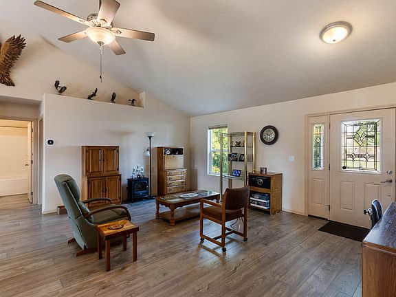 BACK ON THE MARKET! Welcome to this 3-bedroom, 2-bath home offering 1,560 sq. ft. of comfortable single-story living in a quiet cul-de-sac neighborhood close to schools and shopping. The vaulted, open-concept design features a generous kitchen with abundant cabinet space, an island for extra prep and seating, and stainless steel appliances. A split-bedroom floor plan provides privacy, with a spacious primary suite showcasing a beautifully updated bath with dual vanity and walk-in shower. Fresh interior paint and new laminate flooring throughout give the home a bright, modern feel. Outside, enjoy a covered back deck and a fully fenced sunny yard ready for an urban garden! The detached workshop is the ideal escape for projects while the garden shed provides abundant storage for tools or equipment. This Kootenai home is move-in ready and well cared for; blending both convenience and charm.