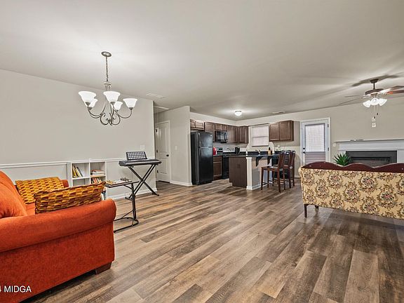 Beautiful One Level Home within Goodall Woods Subdivision. Open floor plans allows for a dining/living/kitchen combo or you can use the combined dining and living areas to form one large living area. The focal point of the living room is the remote controlled electric fireplace providing heat as well as ambiance. Kitchen has solid surface counters and a large breakfast bar. The split bedroom plan allows for some seclusion within the primary suite which boasts a vaulted ceiling, dual sinks, garden tub and large master closet. Large Laundry room is conveniently located right off the two car garage. Lot is large enough for entertaining, playing or relaxing. This property is located within a short drive to Macon or Warner Robins/Perry/Byron. The I75 interstate exchange is close by. Professional pictures will be added at the end of the week.