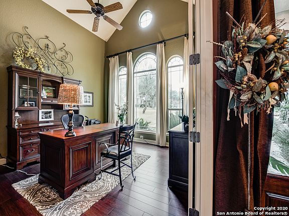McNair Custom Home at the Summit at Sonoma Ranch Gated Community Cul-de-sac Three-car garage Front porch Covered patio Iron fence Mature landscaping Two home offices Four bedrooms with walk-in closets Three full bathrooms Two half bathrooms Master bedroom downstairs access the pool and spa area Granite countertops with walk in pantry gas/electric cooktop connections Vaulted ceilings and crown moldings Hardwood floor and tile first floor Game room upstairs with mini bar and built-in entertainment center.
