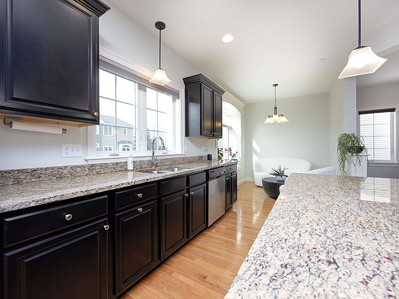 Welcome to your new home, a beautifully designed townhome nestled in the heart of a vibrant community. This spacious residence offers two large bedrooms, two and a half baths, and an open-concept living area that's perfect for modern living. The kitchen features Granite Counter tops, tons of cabinets, stainless steel appliances and an island that's ideal for entertaining. Natural Harwood Flooring through out this home. Large living room with slider out to back yard patio Upstairs, you'll find a luxurious master suite with a walk-in closet and a spa-like bathroom. Two additional bedrooms and a full bath provide ample space for family or guests. The finished basement offers a versatile space that can be used as a home office, gym, or media room. Step outside to your private patio, perfect for relaxing or hosting summer barbecues. The attached garage includes an EV charging station, catering to your eco-friendly lifestyle and making electric vehicle charging convenient and hassle-free. Conveniently located near shopping, dining, and top-rated entertainment venues