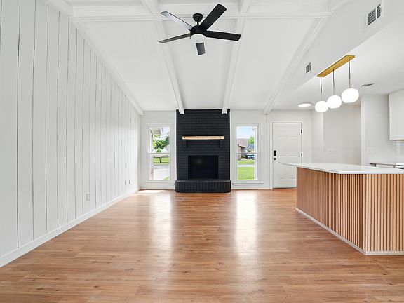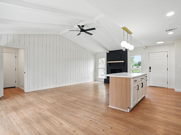 Beautifully renovated 3BR home with 1,232 sqft of stylish living space plus a 377 sqft garage. Features include new continuous LVP flooring, updated trim, reframed windows, and a shiplap accent wall in the living room. The all-new kitchen boasts quartz countertops, new cabinets, appliances, and a large island. Guest bath updated with shiplap, new vanity, and lighting. Built-ins in hall and closets add storage. Fresh paint throughout. Includes a 120 sqft barn-style shed with electrical connections and a sealed foundation. Move-in ready with modern updates throughout!