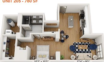 AVAILABLE OCTOBER 1st! ONE MONTH FREE RENT SPECIAL! This unique 760 SF one-bedroom apartment offers high ceilings, expansive windows, and plenty of natural light, creating a bright and spacious living area.