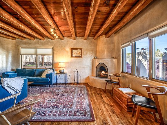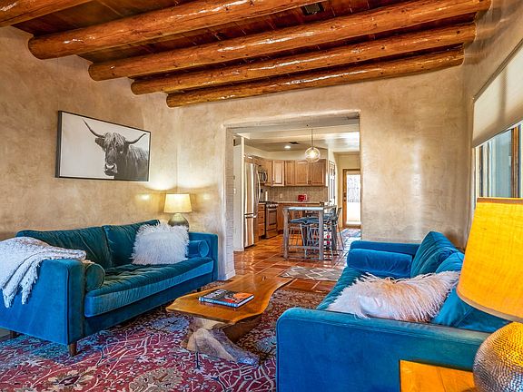 This delightful Santa Fe gem, nestled on a generous 1/4-acre city lot, was completely renovated about 8 years ago and offers approximately 1,913 sq. ft. of living space. Boasting classic Santa Fe charm, the home features traditional vigas, a large country kitchen, granite countertops, and beautiful champagne plaster walls. Enjoy ample storage throughout, gas cooking, and custom details including nichos and wood and Saltillo tile floors.