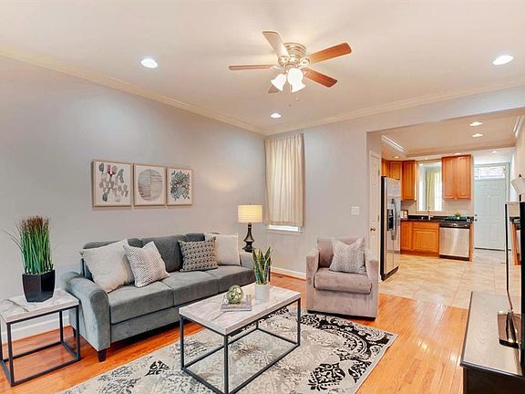 Spacious and beautiful rowhouse with hardwood floors and exposed brick. Open floor plan allows for spacious living. Gourmet kitchen with stainless steel appliances, granite countertops, recessed lighting, and plentiful storage create an inviting environment for home-cooking. Ample counter space rounds out this kitchen. Fenced courtyard in rear with a cozy porch to enjoy a morning coffee outdoors, along with a private parking spot. Second floor has three bedrooms; one of them has a full bathroom (with skylight!) within it, making it the primary suite. The other full bathroom is located in the hallway, between the other two spacious bedrooms. Ample closet space in each bedroom.