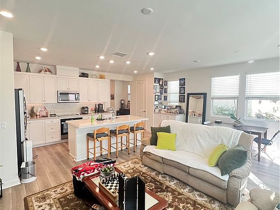 Welcome to this Charming, 4 bedroom, 3 bathroom 2 level home in the highly desirable Primero at Del Sol Community built in 2023. Engineered wood flooring flows throughout the main level that includes living room, dining area and kitchen . The kitchen features quartz countertops, kitchen island with pantry and lots of cabinets. Stainless appliances and sleek backsplash to complete the space. One bedroom one full bath is located downstairs. The second level shows the primary bedroom ensuite dual sink bathroom, glass enclosed shower and walk in closet. Next to the bedroom is the open space used as an office and laundry area. Down the hall are two secondary bedrooms, additional bedroom with tub/ shower combo. Added features are paid solar, paved backyard with succulent plants and no mello roos. Few steps down is the huge 2 car garage. Community amenities include pool, jacuzzi, parks, walking trails and Recreation center. Minutes away from Ventura Beach, the Channel Islands and the Ojai Organic Market.