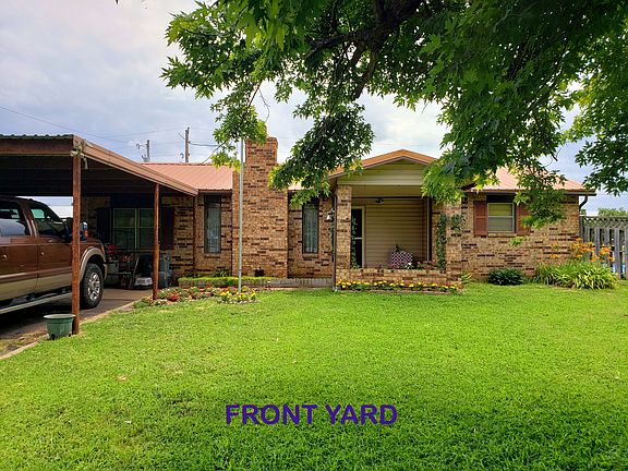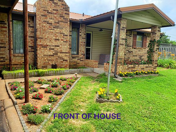 This is a nice 4 br, 2 bath brick home on .4 acre. It has a spacious living room with a wood burning fireplace, small built in bookcase, and ceramic tile that looks like wood. It boasts a country kitchen with dish washer, lots of counter tops, and cabinets. An electric ceramic top stove with double oven and a matching microwave oven. These appliances only 4 years old. A spacious utility room off the kitchen with pantry, washer/dryer hook-ups and room for a freezer. Kitchen, dinning, utility room and both bath rooms have matching ceramic tile. Completely fenced yard front and back. It has a 20' x 40' pool, patio, shop and storm shelter.
