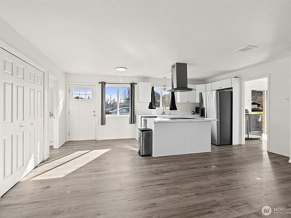 Experience turnkey perfection in this meticulously remodeled single-level home! Every detail has been thoughtfully updated, from striking curb appeal with new board and batten siding and a 30-year roof, to comprehensive infrastructure upgrades including new sewer/water lines and full electrical rewiring. Inside, enjoy an open-concept layout with stylish vinyl flooring, a modern white shaker kitchen with stainless steel appliances, and a luxurious double vanity bath. Energy efficiency is paramount with new insulation throughout and a ductless heating system. A large utility room with a separate entrance and ample parking with a metal shed add to the convenience. This is a truly exceptional home, ready for you to move in and enjoy!
