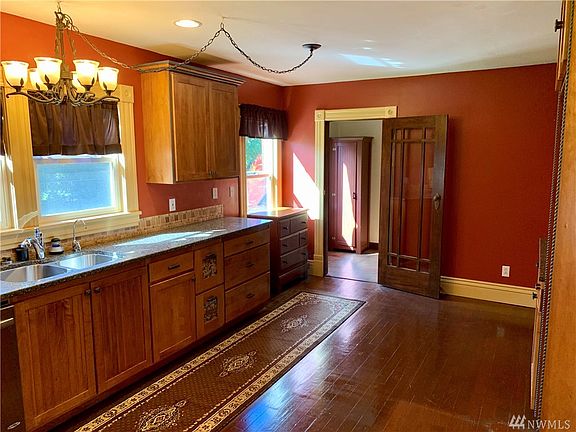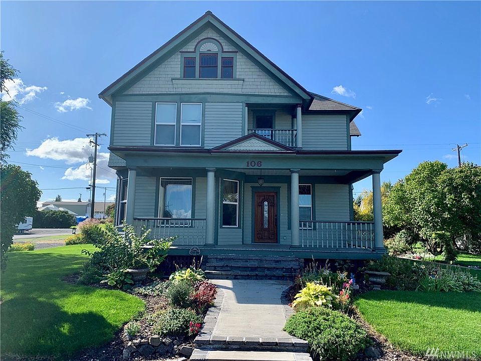 5 bed, 2 1/2 bath, exudes the ambiance and charm of days gone by. Complete restoration in 08 from the foundation to the roof and everything between. It's historic personality includes bay windows, antique lighting, exquisite woodwork, original wood flooring, stained glass, butler's pantry and high ceilings. Main floor master bedroom with bath and four more bedrooms upstairs. The kitchen is a dream with quartz counters and custom cabinetry. The house, garage, patio and gardens sit on 5 city lots