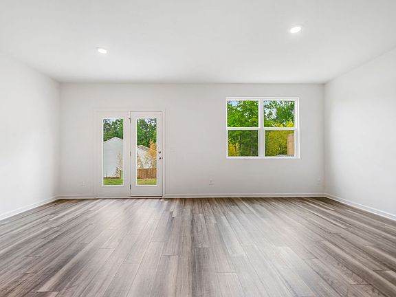 Spacious family roomStainless steel appliancesModern kitchenGranite countertopsWhite cabinetry