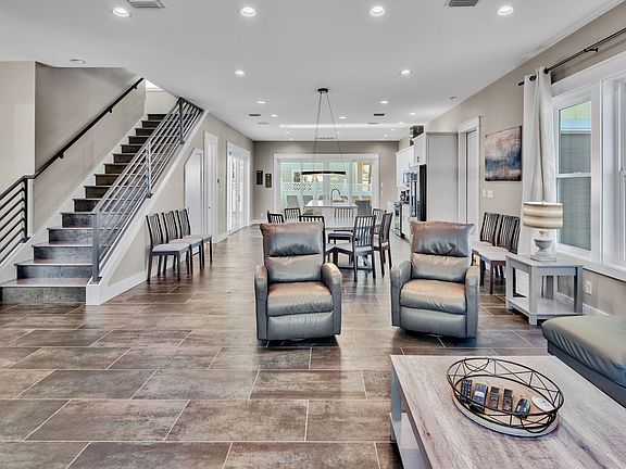 Completed in 2018, this three-story home captures the essence of coastal living with elegant design and modern comfort. Just steps from sugar-white sands and the emerald waters beyond, it offers six bedrooms, six and a half baths, and the versatility to serve as a full-time home, vacation getaway, or income-producing investment. Inside, an open-concept layout welcomes effortless flow from the bright living area through the dining space to a chef-inspired kitchen featuring granite countertops, stainless steel appliances, and a breakfast bar framed by classic white cabinetry. A second living area upstairs provides extra room for games or quiet conversation, while multiple ensuite bedrooms ensure privacy for family and guests. Beyond the glass doors, a private oasis awaits. Completed in 2018, this three-story home captures the essence of coastal living with elegant design and modern comfort. Just steps from sugar-white sands and the emerald waters beyond, it offers six bedrooms, six and a half baths, and the versatility to serve as a full-time home, vacation getaway, or income-producing investment. Inside, an open-concept layout welcomes effortless flow from the bright living area through the dining space to a chef-inspired kitchen featuring granite countertops, stainless steel appliances, and a breakfast bar framed by classic white cabinetry. A second living area upstairs provides extra room for games or quiet conversation, while multiple ensuite bedrooms ensure privacy for family and guests. Beyond the glass doors, a private oasis awaits. The fenced backyard features a sparkling pool and spa, surrounded by paver terraces, a grilling station, and a shaded patio, perfect for outdoor dining and evening gatherings. A one-car garage and ample parking for seven vehicles add convenience, while the gated community enhances peace of mind. For those who value both lifestyle and opportunity, this home captures the best of both strong rental performance, abundant amenities including a community pool and picnic area, and the unmistakable allure of the gulf just down the street.