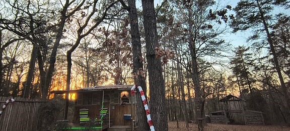 3 acre Hilltop Retreat, Nice Water view overlooking Turtle Bay Cove on Lake Cypress Springs . Small Rustic Cabin with full Bath and walk around deck . Rustic Cedar Barn.. Bamboo Forest and Spring Fed Creek runs all year round. Beautiful Mature Dogwoods all over property and a forest variety of other Trees. Two Road access from Sandy Ln Rd and Sandy Lake Rd. T-post and bamboo fence on one side and creek border on other side . This development is none restricted with no maintenance fees. Farm Animals are allowed. Plenty room to park boat and or a RV.