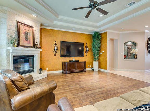 1-1/2 Story. Most Sq.Ft. on First Floor. Former Model for Monticello Homes. Open floor plan. High ceilings. 4014 Sq Ft. 4 Bdr, 3.5 Baths, 3 Car Garage, Study & Media Rm that's loaded. 3 Bdr & Study down. Media Rm, 1 Bdr & full Bath up. Large Family Rm w/Fplace overlooks Granite island Kitchen w/Stainless Steel Appliances. 20' X 19' Master Suite. Luxurious Master Bath has 7' X 7' Walk In Shower & Whirlpool Garden Tub, his & her Closets. Custom Wood Shutters throughout. Landscaped corner lot. Top Rated School