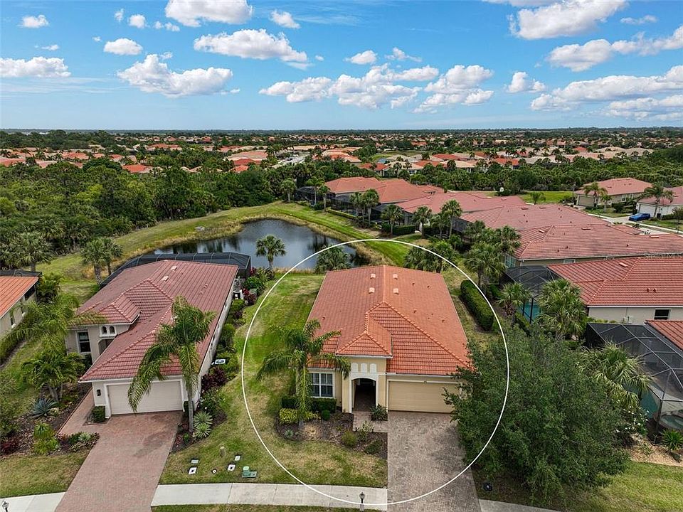 This exquisite WCI-built home is presented in a condition that surpasses new. It's a one-owner residence, used only seasonally and comes FURNISHED, showcasing the sought-after Islamorada floor plan across 2,194 square feet. The design includes three bedrooms, each with its own full bathroom, plus a versatile office den or flex space. <br> <br> Meticulously maintained, the home gleams with tile flooring in the main living areas and bathrooms, cozy carpet in the bedrooms, and stylish luxury laminate in the office. An abundance of natural light enhances the space, complemented by plantation shutters and a Hunter Douglas easy shade blind on the pocket slider lanai doors.<br> <br> The living experience extends outdoors to a screened lanai, which offers serene views of a picturesque lake and nature preserve. The lanai is prepped for a gas outdoor kitchen, allowing for future installation or easy hookup for a grill. Inside, the chef's kitchen doesn't disappoint with its 42-inch white cabinets adorned with crown molding, a custom glass backsplash, stainless steel Whirlpool appliances, quartz countertops, and a spacious walk-in corner pantry.<br> <br> Privacy is paramount with the split floor plan, providing each bedroom with an en-suite bathroom. The primary suite is a sanctuary of its own, featuring dual vanity sinks with stone countertops, a custom walk-in shower enclosed by Euro glass, and a substantial walk-in closet.<br> <br> This pristine home represents a true turnkey opportunity for discerning buyers, having been exceptionally well-cared-for from the moment of purchase. This home was constructed in 2015 and sits on an oversized lot. <br> <br> Membership for golf is OPTIONAL at The Venetian Golf and River Club. Residents can enjoy a wide range of amenities catering to an active lifestyle, including a championship golf course with a driving range, clubhouse, and restaurant/bar, a tennis pro shop, a resort pool/spa, a lap pool, well-equipped workout rooms, and locker rooms. The recently renovated tiki bar/restaurant with expanded seating provides a perfect spot to relax. Additionally, two new pickleball courts have been added, and residents can take leisurely walks along the beautiful nature walk and boardwalk by the Myakka River. The gated community ensures 24/7 security with a guardhouse. Conveniently located just minutes away from downtown, restaurants, and beaches, this property offers a unique opportunity to own a remarkable home. Schedule a showing today to discover the luxurious lifestyle that awaits you. Check out the 3D matterport interior tour, floor plan and drone video tour.