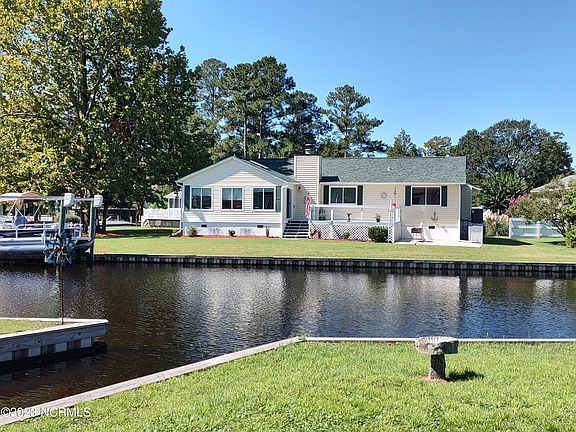 Spectacular Waterfront Home Inside And Out! Waterfront on two sides of this amazing home with boat lift and easy access to the river! Impressive interior with welcoming entry that leads to the kitchen that is loaded with cabinets and counterspace. There is lots of counter seating for gathering around while the chef cooks. Features include soft close drawers and cabinet doors, microwave drawer, pantry with drawers, upgraded appliances and quartz countertops. The living room offers a high ceiling, a modern fireplace, and has water views. This space is shared with an attractive dining area perfect for guests! The back sunroom is spacious and faces the water with perfect water views of the dock and lift. The master bedroom suite is relaxing and offers a bathroom with a custom walk-in shower that is sure to impress. The two additional rooms are down the hall and perfect for company and use one as an office. The second bath also has a custom tile shower and is completely remodeled. The laundry room comes with the washer and dryer and can double as the mud room just off the garage. Offers a 2 car attached garage with some storage and work areas. Outside is the perfect spot to enjoy your evening whether on the large covered front porch or the back deck overlooking the water. Lots of side yard with shade and additional water views. Great location convenient to historic downtown New Bern or the North Carolina beaches.