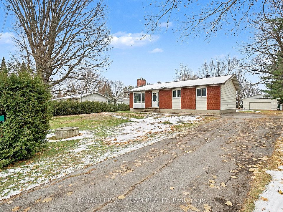 Warm and welcoming 3-bedroom bungalow, lovingly cared for by the same family for over 30 years, set on a private, tree-lined 0.5 acre lot in Marathon Village. Enjoy the perfect balance of rural peace and neighbourhood convenience with quick access to Carp and the 417. Inside, the bright open-concept living and dining area features a cozy wood-burning fireplace, a bay window and flows into a spacious kitchen overlooking the backyard. Three comfortable bedrooms and a 4-piece bathroom complete the main level. Key updates include roof shingles (2015 approx.) and a new furnace (2024), offering added peace of mind.The unfinished lower level has great potential. An oversized, insulated detached garage is heated with a wood stove and adds fantastic flexibility for hobbies, storage, or future projects.