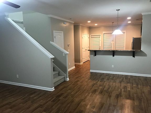 Modern and spacious townhome with vaulted ceilings. The townhome has been recently renovated with vinyl plank flooring upstairs and fresh paint throughout. Open floor plan with kitchen, dining area, and living room on main floor. Kitchen is completely open to dining area and includes a new style fridge, stove, mounted microwave, and dishwasher. Lots of cabinets and pantry. Washer and dryer hookup. Hard wood flooring throughout main floor. Upstairs, there is one master suite that includes a spacious closet and also a large private bathroom that includes a walk-in shower and also a bathtub. Upstairs also includes two additional bedrooms and one full bathroom. Back patio with storage closet. Community pool access. No pets allowed. No smoking allowed. Harmony Townes - Pooler, Georgia $1,950 each month $1,950 security deposit Background check and credit check required. Must have proof of stable income. Owner is responsible for paying the HOA fees each month, landscaping, and trash pickup each Tuesday. Tenant is responsible for electricity, water, internet, and cable. Renters insurance is recommended.