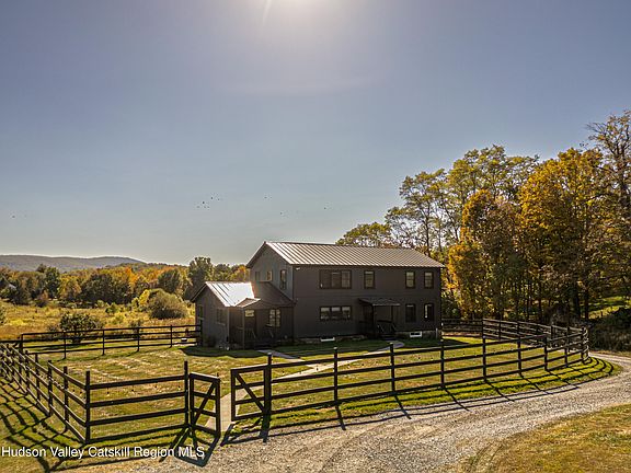 Welcome to Slatefield Farmstead, a modern farmhouse set on over ten pastoral acres in peaceful Salisbury Mills. A long private drive leads to the broad-fronted façade of weathered clapboard and a durable tin roof that adds timeless appeal. Once a working dairy farm, the property preserves its historic character while offering every modern comfort. Its location near the Metro-North station means you can be in Manhattan in under 90 minutes, perfect for weekend getaways or weekday commuting without giving up space, privacy, or rural serenity.