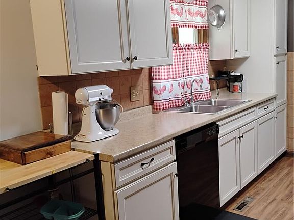 Attractive, brick-front 3-bedroom, 2-bath home in nice area, near schools. On cold evenings, you can cozy up to the wood-burning fireplace in the living room. Plenty of room to entertain, with a large bonus room off the dining room which has patio doors leading to a deck and a big back yard. Also has a covered front porch, to relax on. During ownership, current owner upgraded the kitchen cabinets and added a luxurious, portable bar between the open dining room and kitchen area. The main bathroom offers the easy access of a walk-in shower. Will need some TLC; being sold "as-is, in current condition," so you can make the upgrades to suit your personal taste. Carpets were just professionally cleaned. Make an appointment to see if this is the place you've been waiting for!
