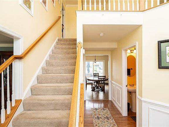 Here it is: a beautiful 4 bedroom home in The Highlands: Great newer development with sidewalks and nice size lots. This home is one of those that makes you comfortable and at home the moment you walk in. 2 story entrance with hardwood floor, dining room with beautiful bay window that is giving extra natural light and making this room super comfortable. Open floor plan, big kitchen with eat in area open to the family room that nesting the fireplace and overlooking beautiful deck , flat yard. Formal living room is connected to the family room and making a nice living space flow. Second floor has big master suite with vaulted ceiling, walk-in closed .Also 3 other bedrooms are nice size. Nice little loft overlooking entrance and making this house feel super open and modern. 1st floor laundry. 2 car oversized garage and huge basement that can be turned into nice game room, insulated and full bath rough in. Nice size yard (lots are about 0.3 acre big). Original owner. Move in condition.