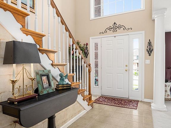 Immaculate & elegant 2 story home located on a quiet street close to park, pool & school. The foyer with high ceilings welcomes you. Formal living room has trey ceiling & columns. 2 story great room with wall of windows & unique, ornate gas log fireplace. Fully applianced kitchen with island & informal dining room has tile flooring & french doors to deck. Sunny, large main floor laundry room has large countertop & washer/dryer stay. Powder room is on the main floor. Upstairs has a loft area that overlooks great room. Huge primary bedroom with large walk in closet, bath with columns has whirlpool tub, w vanities, tiled shower & water closet. Bedroom 2 & 3 are large and have large oversized storage closet, main bath with tub, shower & tiled floor. Finished part of basement has a family room with a half bath & office. Large storage area. Extra room currently used as kitty bedroom. Furnace & A/C 2018. Water backup on sump pump is 4 years old. New roof. Tandem 4 car garage & beautiful landscaped yard.