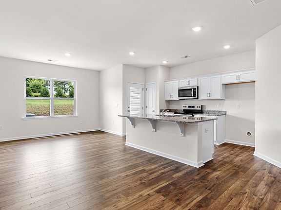 Check out 106 Sunriff Court, a beautifully designed townhome in featuring three bedrooms, two and a half bathrooms, and a one-car garage. The open-concept layout is perfect for entertaining, ensuring you’re always part of the action. Upon entering, you'll be welcomed by a spacious foyer that leads into the living and dining areas. The open concept kitchen provides ample storage and features a glass door that seamlessly connects the indoors with the patio, enhancing your living experience. A conveniently located half bathroom is situated off the living room. Moving upstairs, you’ll find two bedrooms, which share a bathroom. The upstairs laundry room is also ideally located for easy access. On the opposite side of the floor, the primary bedroom features privacy and comfort. The en-suite primary bathroom boasts a double vanity and a walk-in shower with glass panels. The spacious walk-in closet is perfect for additional storage. The primary bedroom features a large window, filling the room with extra light. With its smart design, natural lighting, spacious layout, and modern finishes, this townhome is a wonderful place to call home. Pictures are representative.