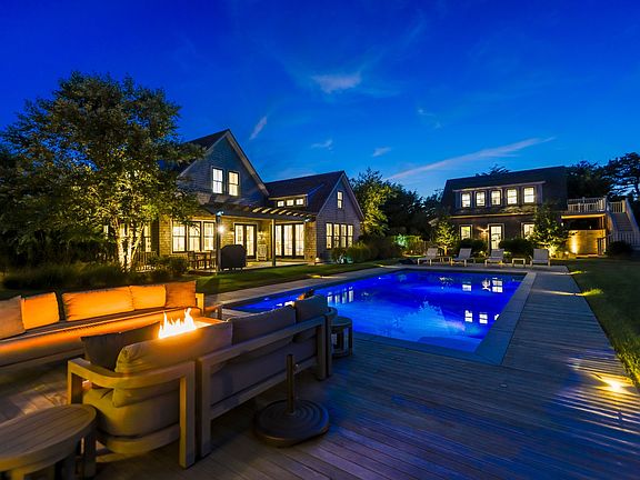This stunning Surfside Beach compound, crafted by Emeritus and built by Cottage and Castle, is a bright and welcoming oasis. Featuring a total of seven bedrooms, including those in the main house and a spacious suite above the two-car garage, this property provides ample space for family and guests. Set on over an acre, it offers ultimate privacy and exceptional outdoor living, with expansive lawns, a private chip and putt area with a sand trap, and an impressive 18' by 40' heated saltwater pool, complete with a stylish pool cabana. The contemporary design, combined with a classic summer cottage vibe, enhances its charm. With convenient proximity to both the beach and town, this home is perfect for enjoying all the Nantucket lifestyle has to offer. Experience the ideal blend of relaxation and luxury in this inviting coastal haven! There is just under 1200 square feet of additional ground cover available and there is also ample space in the rear of the lot for a tennis or pickleball courts.