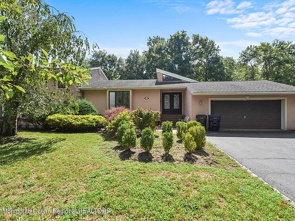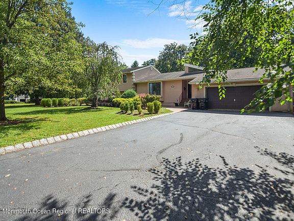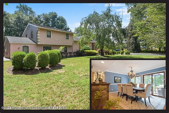 Rare opportunity to own this contemporary style, mother- daughter split level. With 4/5 bedroom, 3-bath, full finished basement and inground pool. Located in highly desirable area of Lincroft is just what you've been waiting for. Warm and spacious kitchen features granite countertops with a large eat-in island. Formal dining room with sliders leading out to the deck. The family room boasts tons of natural light, vaulted ceilings, fireplace, large windows and sliding doors to the backyard. Home is a private oasis that backs up to woods and Christmas tree farm.