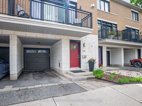Welcome to 106 Tay Street, Westboro Living at Its Finest! There are only a few units this size in this development. This immaculate row home offers just shy of 2,200 sq. ft. above grade and a lifestyle that perfectly blends comfort, style, and location. Nestled right in the heart of Westboro Village, you're steps away from trendy cafes, boutiques, restaurants, and all the urban conveniences that make this one of Ottawa's most sought-after neighbourhoods. Inside, the thoughtful layout offers 3 full-sized bedrooms, 2 beautifully updated full baths, and an additional 2-piece powder room. The ground floor features a cozy family room with access to a private, fenced rear yard. Truly your own little oasis and a rare find in the village. Need more space? The basement provides ample storage and an ideal space for hobbyists or seasonal organization. The main living area is the true heart of the home, an open, airy entertaining space complete with a bright, oversized kitchen, quartz countertops, updated lighting, and a charming piano/lounge area. Multiple balconies bring in natural light and invite indoor-outdoor living. Hardwood floors, newly recarpeted stairs, and no corners cut in quality show the pride in Domicile's craftsmanship. With 2 parking spaces, low maintenance requirements, and a design tailored for modern urban lifestyles, this home is a perfect fit for executive couples or families looking to live large without the hassle. You simply can't get more in the village than this. Make 106 Tay Street your next address, where sophistication meets Westboro charm.