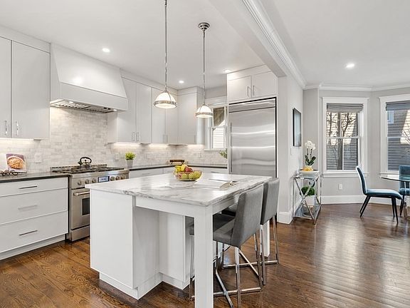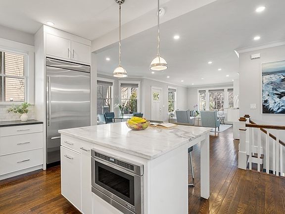 Located on a beautiful, tree-lined street in Coolidge Corner, this 4 bedroom, 2.5 bath condominium offers over 2,700 square feet of living space on two levels. The first floor showcases a flexible floor plan with an open kitchen/living/dining area with center island, custom built-ins and gas fireplace. Also on the first level is the primary suite with a walk-in closet and en suite bath with double vanity. The lower level boasts a large family/media room with wine fridge, 3 additional, generously-sized bedrooms and a full bath. Other highlights include wood floors, central a/c, first floor powder room, patio space and two car parking, including one garage spot. This property is conveniently located close to shops, restaurants and public transportation.
