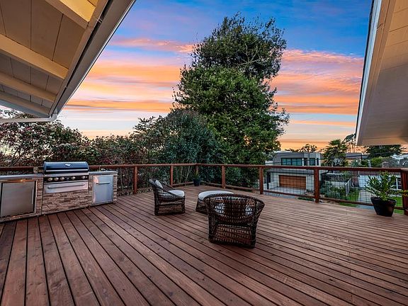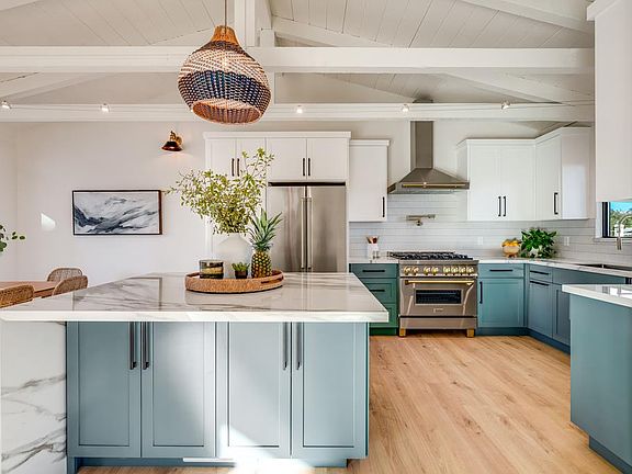 If you're looking for the ultimate beachside retreat, this beautifully renovated home in Aptos is the perfect spot. Nestled just three houses from the bluff in the desirable Cliff Drive neighborhood, you'll wake up to the sound of waves crashing against the shore. The location cant be beat, only three blocks to Hidden Beach, and Seascape Golf Course practically in your backyard. This modern beach home is a real show stopper that features a huge and beautifully landscaped backyard, a flexible floor plan that includes three bedrooms, two and a half baths, a bonus room/office, and a detached kids' playroom. Let's not forget the outdoor amenities: an outdoor shower, as well as a bar and grill, make it perfect for entertaining friends and family. Inside, you'll find a luxurious kitchen, complete with high-end ZLINE appliances, two tone cabinetry, and a gorgeous waterfall island. This home offers the ideal lifestyle, whether you're looking for a family home or a weekend beach getaway.
